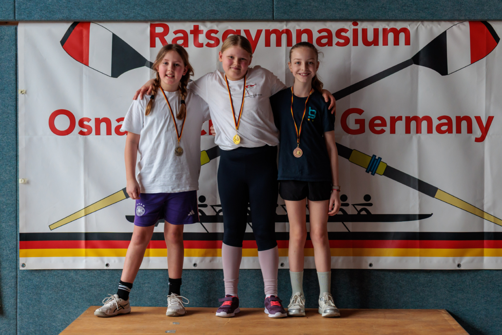 Osnabrück (meier) Mit knapp 90 teilnehmenden RuderInnen bildet der Ruderergometercup des Ratsgymnasium Osnabrück traditionell der Abschluss der Winterwettkampfsaison der Mindener SchülerruderInnen. Ein breites Programm mit Einzelrennen, Staffelwettkämpfen und Sportspielwettkämpfen bietet noch einmal die Gelegenheit mit allen Aktiven vom Wasserstraßenkreuz gleichzeitig eine Regatta zu besuchen. „Wir freuen uns über die tolle Stimmung in der Halle vor allem bei den Staffelrennen, aber besonders auch über das jeweilige Dreifachgold von Leana Schlothauer und Lukas Rathert.“, resümiert Mädchentrainerin Arwen Hokamp. Nach dem Premierengold von Matha Steinki freut sich Herderprotektor Luca Ahrensmeier über den Motivationsschub für seine Ruderriege. „Die enge Mindener Ruderkooperation trägt immer wieder Früchte und bildet das Rückgrat der Jugendarbeit des Bessel RC“, ordnet Ahrensmeier die starken Ergebnisse ein. Besonders in den Zehnerstaffeln der KinderruderInnen , in denen jede AthletIn nacheinander 60 Sekunden Vollgas mit abschließendem Wechsel absolvieren musste, zeigte sich die große Dominanz der Kooperative von Herder- und Besselgymnasium, hier gingen 4 von 6 Podestplätzen nach Minden. Der Doppelsieg der U-13 Staffel, die zu erheblichen Teilen aus den RuderanfängerInnen der Saison 2025 bestanden, und die Plätze 2 und 3 für die U-15-Staffeln zeigt die momentan Breite des Kaders.“Wir haben einen starken Anfängerjahrgang mit sehr motivierten RuderInnen der Klasse 5 in diesem Jahr. Über 35 Kinder vom Herder und Bessel waren nach einem erfolgreichen Trainingswinter hier am Start und bildeten insgesamt 4 Staffeln, zusätzlich gingen sogar die beiden Einzelsiege in der jüngsten Wettkampfklasse ans Pumpwerk nach Minden“, fasst Besselprotektor Martin Meier und Trainingsgruppenleiter Jörn Günther das starke Abschneiden der Jüngsten zusammen. Auch der vom Trainergespann Laura Korte, Björn Bierwirth und Konrad Holsmölle betreute U-19 Bereich konnte mit Siegen von Lenie Zimmermann und dem deutlichen Sieg im prestigeträchtige U-19-Achter nach einer sehr ausgeprägten Krankheitsphase der gesamten Trainingsgruppe in den letzten Wochen zufriedenstellende Ergebnisse eingefahren werden. Neben starken Leistungen auf dem Ruderergometer wussten vor allem auch die NachwuchsruderInnen der Jahrgänge 2012 bis 2015 beim Spielturnier zu überzeugen. „Das Wintertraining war auch bei uns wie nie von langen Krankheitsausfällen geprägt, daher war die Silebermedaille von Leyla Wallbaum und viele gute Platzierungen in den Einzelkonkurrenzen eine gute Bestätigung. Dieser Wettkampf zeigt uns immer, wo wir im Vergleich zu anderen Trainingsgruppen stehen und ist daher am Ende des Wintertrainings immens wichtig. Die Freiluftsaison 2026 kann kommen!“, fassen die beiden verantwortlichen Trainer des U-15-Bereiches Benjamin Franke und Protektor Daniel Bredemeier stellvertretend für das gesamte Trainerteam den Wettkampftag in der Schlosswallhalle durchaus zufrieden zusammen.